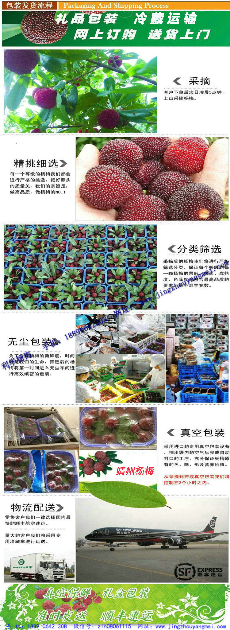 1、杨梅上市的时间只有十天半个月左右,错过了就要再等一年呢!去年就有好多客户没有尝到咱靖州的正宗杨梅,后悔不已!!!